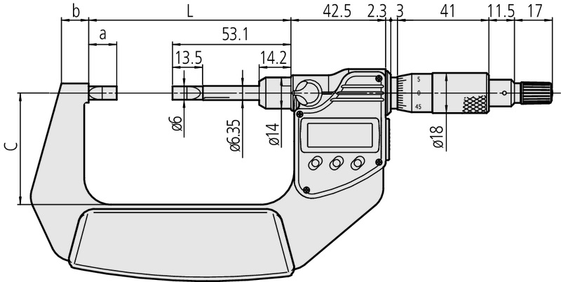 Mitutoyo 422-371-30 Digimatic Digital Micrometer, 0-1", Anvil Type D